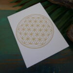 Reproduction d'une aquarelle énergétique. Cette aquarelle élève le taux vibratoire de l'espace qui l'entoure ainsi que des objets posés dessus. D'un côté, vous avez l'illustration et de l'autre une fleur de Vie.